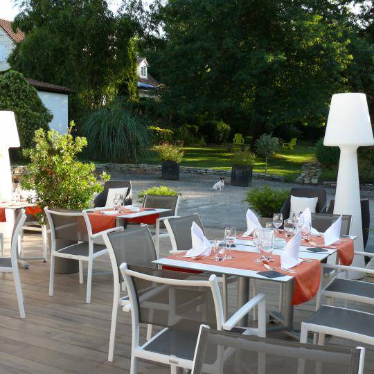 avec vue sur le parcDès les beaux jours, le Restaurant HC s’ouvre sur l’extérieur. Déjeunez ou dînez sur la terrasse et profitez de la quiétude de notre jardin pour vous détendre lors de votre séjour. Il vous sera également possible de prendre votre petit-déjeuner en terrasse, et profiter du chant des oiseaux pour vous réveiller en douceur, en pleine nature.