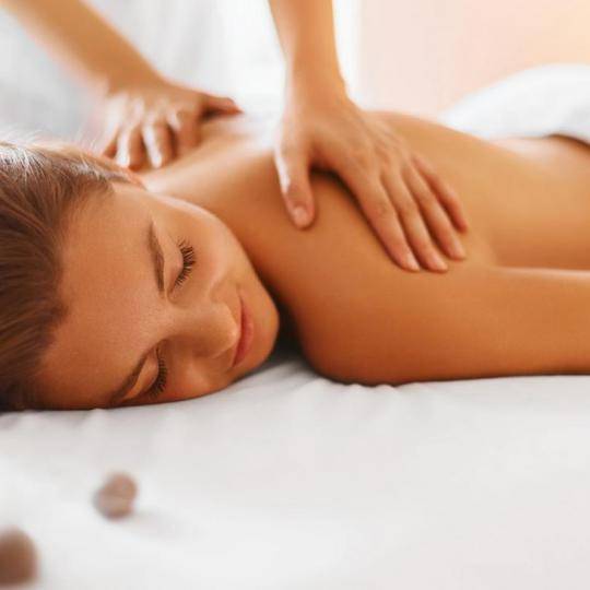 Massage relaxant à l’huile avec mouvements lents, pression douce